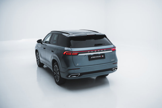 En su frontal, preside la parrilla vertical en cascada clásica de los modelos de la famila Jaecoo. En su lateral, este modelo tiene unas líneas más depuradas y presenta como novedad los tiradores ocultados acabados en el mismo color de la carrocería. Además, equipa unas llantas de alumnio de 20 pulgadas que subrayan el "caracter robusto a la par que sofisticado" de este ejemplar.