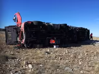 Un camión ha volcado en un accidente en la A-1511, en Santa Eulalia (Teruel). - SERVICIO DE BOMBEROS DE LA DIPUTACIÓN DE TERUEL
