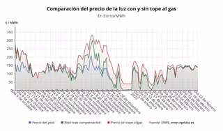 A este precio del 'pool' se suma la compensación a las gasistas, que tiene que ser abonada por los consumidores beneficiarios de la medida, los consumidores de la tarifa regulada (PVPC) o los que, a pesar de estar en el mercado libre, tienen una tarifa indexada, que para este miércoles se situará por quinto día consecutivo en 0 euros/MWh.