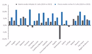 En 2024 el sueldo medio ofertado en la plataforma cayó en cinco comunidades autónomas, mientras que el precio medio ofertado en coches.net subió en todas las demás.