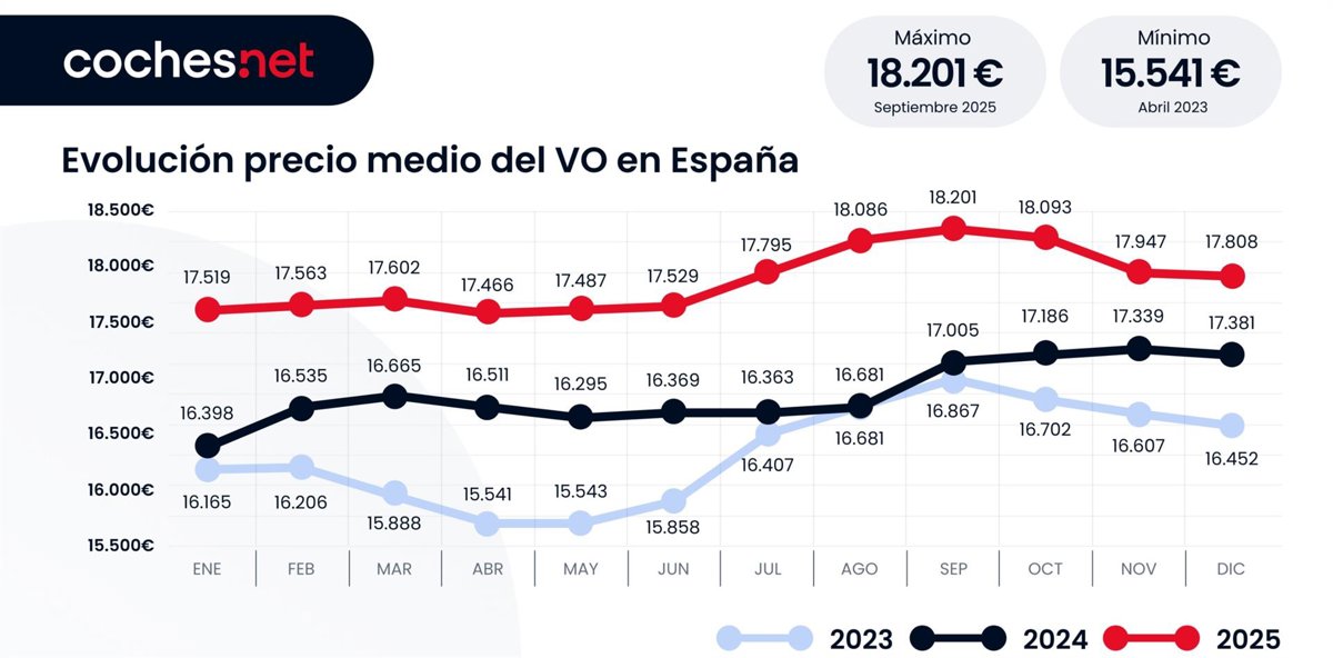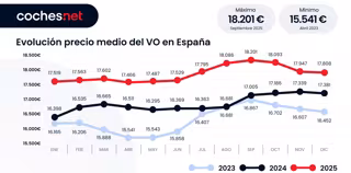 El precio medio del vehículo de ocasión supera los 17.800 euros en 2025, un 6% más que en 2024 - COCHES.NET