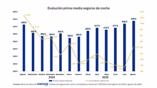 En tanto, frente a agosto de 2024, la prima ha registrado una subida del 2,2%. Así, contratar un seguro de coche en agosto de 2025 fue diez euros más caro que hacerlo en el mismo mes del pasado año.