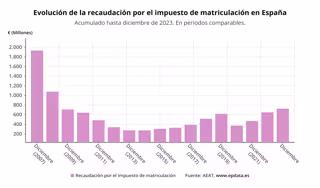 En diciembre, la recaudación pública por el impuesto de matriculación se situó en 62,76 millones de euros, lo que supone reducir en un 1,9% los registros contabilizados en el último mes del ejercicio previo (63,93 millones de euros).