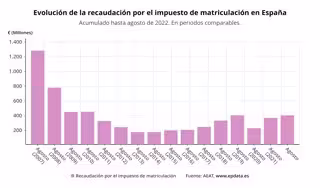 Recaudación acumulada por el impuesto de matriculación en España hasta agosto de 2022 (AEAT) - EPDATA