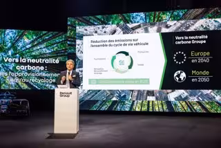 El objetivo de Renault es alcanzar la neutralidad en carbono en Europa para 2040 y en todo el mundo en 2050. Así, entre otros elementos, el grupo se ha comprometido a reducir su huella de carbono en la actividad de Compras centrándose en seis componentes (acero, aluminio, polímeros, electrónica, neumáticos y vidrio) que en la actualidad representan el 90% de las emisiones. En 2030, el consorcio galo pretende reducir sus emisiones asociadas a estos productos en un 30%.