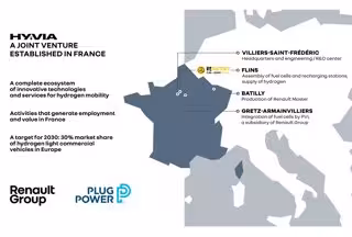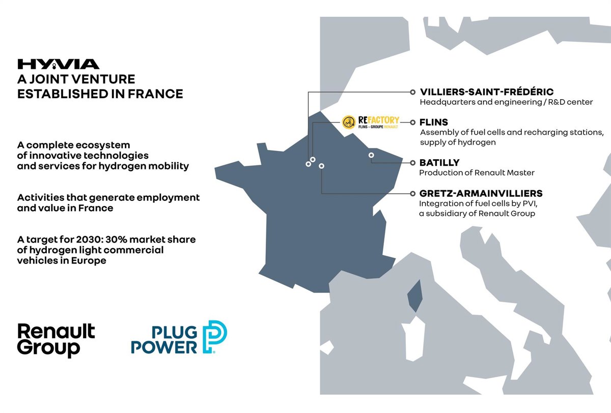 La actividad de Hyvia se desarrollará en las instalaciones de Renault en Francia, por lo que la sede de la empresa conjunta, así como los equipos de investigación y desarrollo se ubicarán en Villiers-Saint-Frédéric, con el centro de desarrollo e ingeniería de vehículos comerciales ligeros de la marca del rombo, con el fin de optimizar sinergias entre equipos.