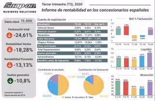 La firma ha indicado que el resto de cifras de los centros de distribución de vehículos siguen siendo "peores" a las del año pasado. Así, la facturación de los concesionarios bajó un 24,61% en el tercer trimestre, mientras que la rentabilidad del área de ventas bajó un 18,28% y la de posventa un 13,13%.