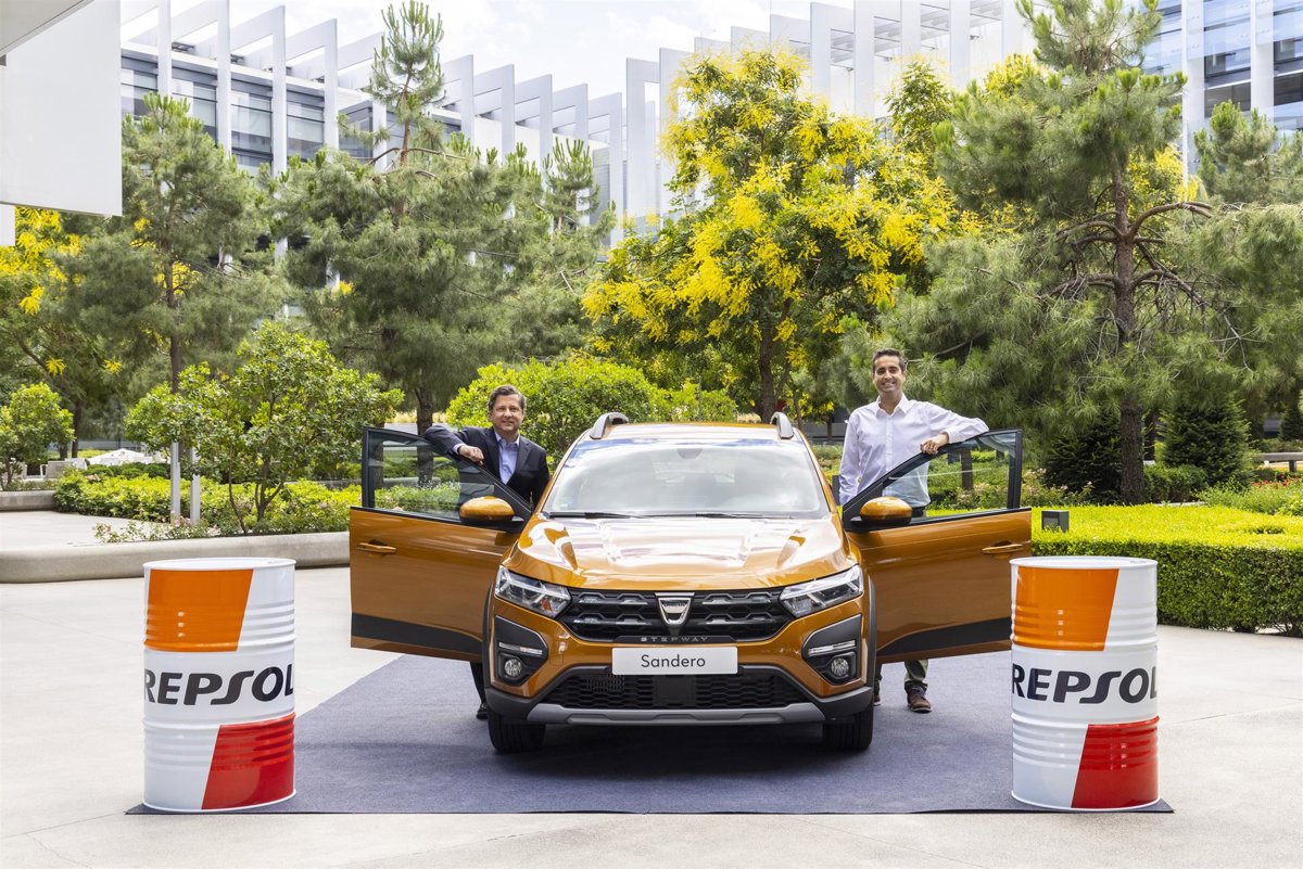 El director ejecutivo de Movilidad Iberia de Repsol, José Barreiro, y el director general de la marca Dacia en Iberia, Francisco Hidalgo, han firmado el acuerdo de colaboración en Campus Repsol, la sede corporativa de la compañía multienergética.