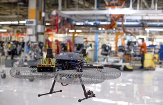 El proyecto 'Indoor: Autonomous Flying Platform', por ahora en fase piloto, está pensado para aplicarse en toda una flota de drones programados para volar de manera autónoma. Para ello, los drones llevan incorporado un sistema que detecta los elementos del taller mediante sensores.