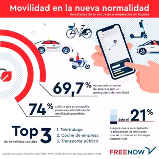 En este sentido, hasta el 70% de los empleados en Europa demanda a sus empresas promover alternativas de movilidad sostenible, aunque solo una de cada cinco compañías está interesada en controlar las emisiones derivadas de la movilidad de sus empleados cuando se desplazan al trabajo o en viajes de negocios. "Con el trabajo híbrido transformando los patrones de desplazamiento en los últimos dos años, los trabajadores buscan nuevas fórmulas de movilidad más sostenibles y flexibles que se ajusten a la nueva normalidad", han explicado desde Free Now.