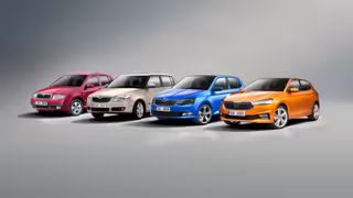 La primera generación del Fabia se fabricó sobre una plataforma completamente nueva del Grupo Volkswagen y destacó por ser uno de los coches más espaciosos de su clase. Desde entonces, la compañía ha fabricado cuatro generaciones distintas de este modelo.