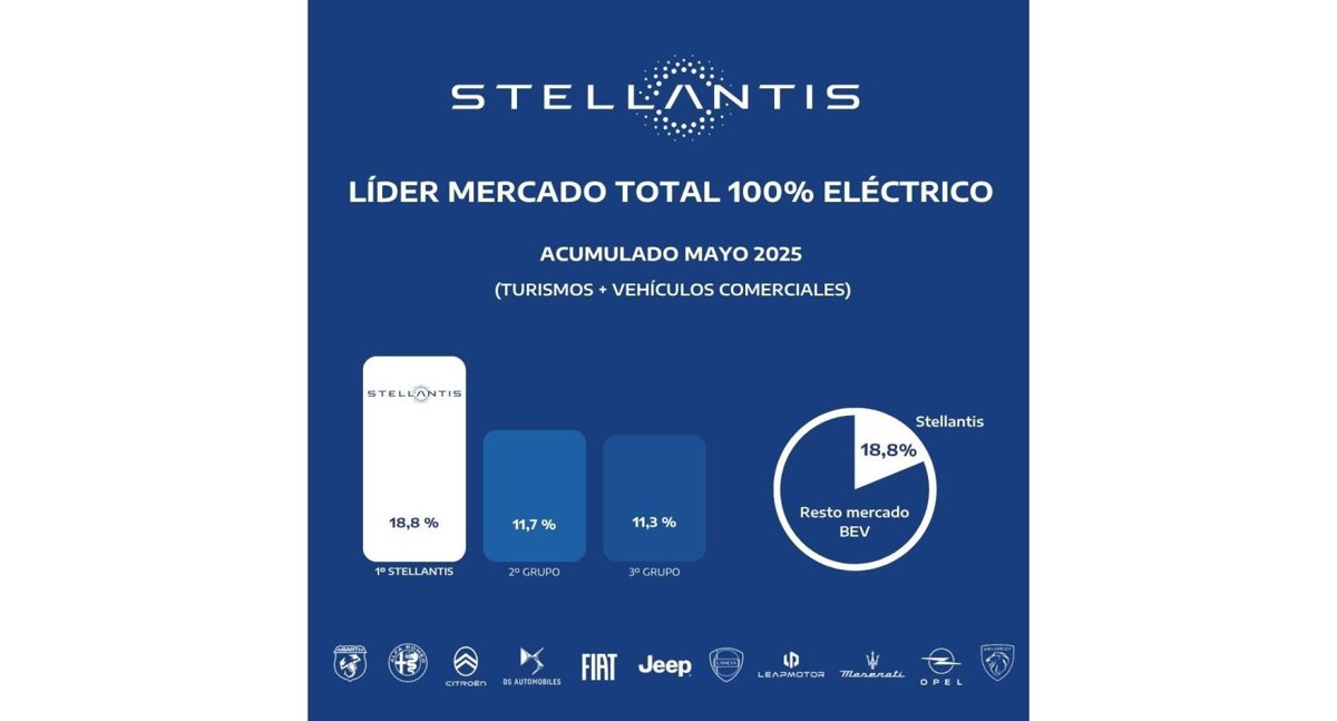 El grupo automovilístico franco-italiano también se ha posicionado como líder en el mercado total 100% eléctrico en lo que va de año, con 7.303 matriculaciones y una cuota del 18,8%.