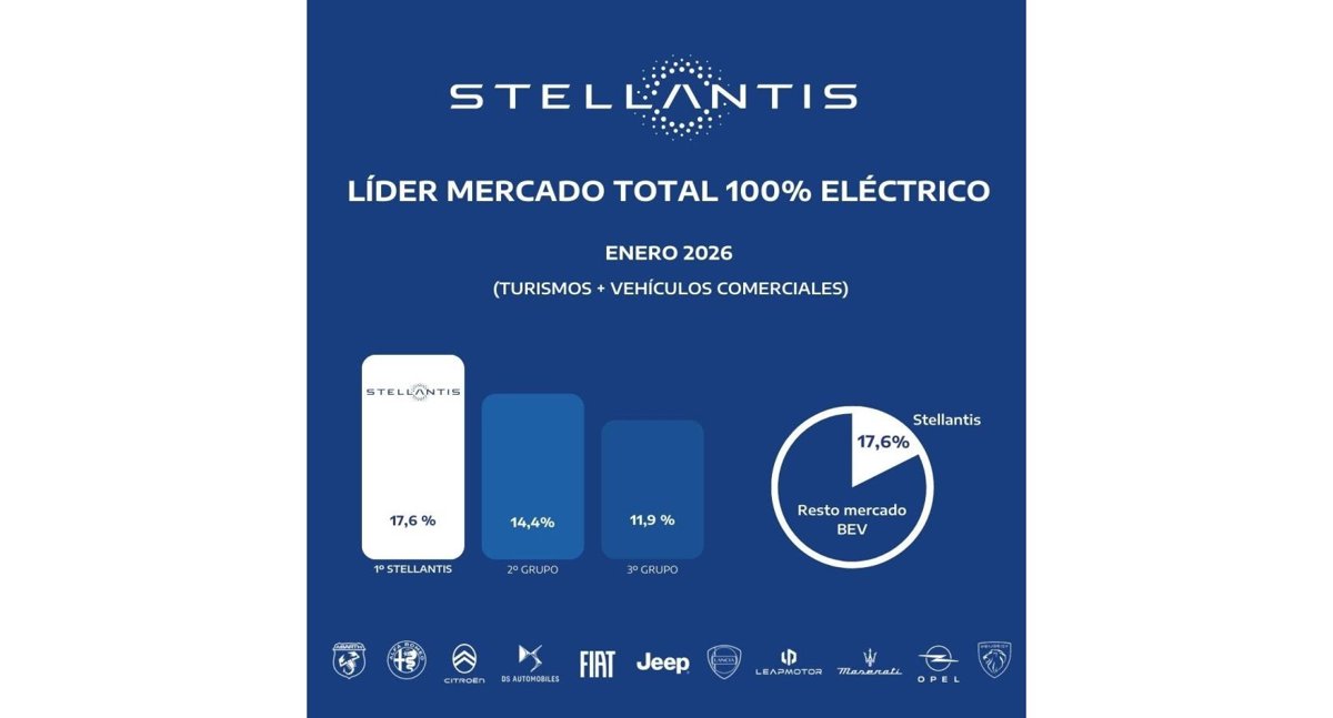 El grupo Stellantis, al que pertenecen marcas como Peugeot, Jeep, Leapmotor o Fiat, ha matriculado 1.274 vehículos en España en enero, lo que le ha permitido lograr una cuota de mercado en el primer mes del año del 17,6%.