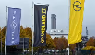 Archivo - FILED - 19 October 2021, Thuringia, Eisenach: "Stellantis", "Grandland X" and the Opel logo are seen on banners in front of the Opel Automobile GmbH Eisenach plant. Despite the global chip shortage, Opel parent company Stellantis has exceeded - Martin Schutt/dpa-Zentralbild/dp - Archivo