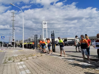 Los trabajadores de las empresas auxiliares de Nissan rodean la planta de la Zona Franca de Barcelona, el viernes 12 de junio de 2020. - EUROPA PRESS