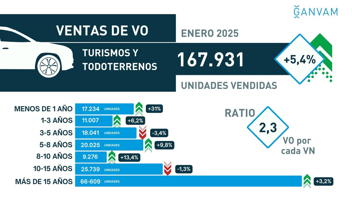 Las ventas de coches de segunda mano suben un 5% en enero, hasta las 167.931 unidades, gracias al tirón de los seminuevos. - FACONAUTO Y GANVAM