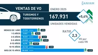 Por otro lado, respecto a las fuentes de energía, las operaciones con vehículos usados de diésel --que representaron el 50% de las operaciones-- invierten la tendencia y marcan signo negativo, con un descenso del 2,2% durante el pasado mes de enero.