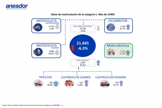 Por su parte, las ventas de ciclomotores subieron en junio un 41,7%, hasta 2.164 unidades, acumulando un crecimiento del 14,6% en lo que va de año, con 8.649 unidades. Además, las entregas de triciclos crecieron un 38,8% el mes pasado (340 unidades) y un 67,4% hasta junio (1.448 unidades).