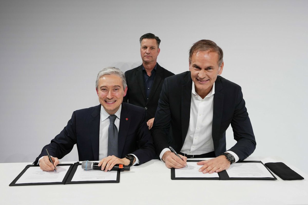 El consejero delegado del grupo Volkswagen, Olivier Blume, y el ministro canadiense de Innovación, Ciencia e Industria, Franois-Philippe Champagne, han firmado un anexo al memorando de entendimiento que ya habían suscrito la empresa y el país el pasado mes de agosto.