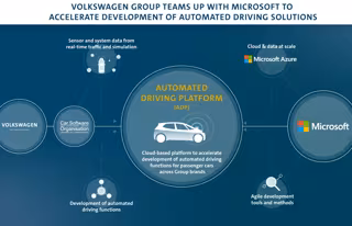 La empresa de software del grupo Volkswagen, Car.Software, colaborará con Microsoft para desarrollar una plataforma de conducción automatizada (ADP, por su siglas en inglés), basada en la nube de Microsoft Azure y que aprovechará sus capacidades para ofrecer experiencias de conducción automatizadas aún más rápido a escala global, según ha informado la marca automovilística.
