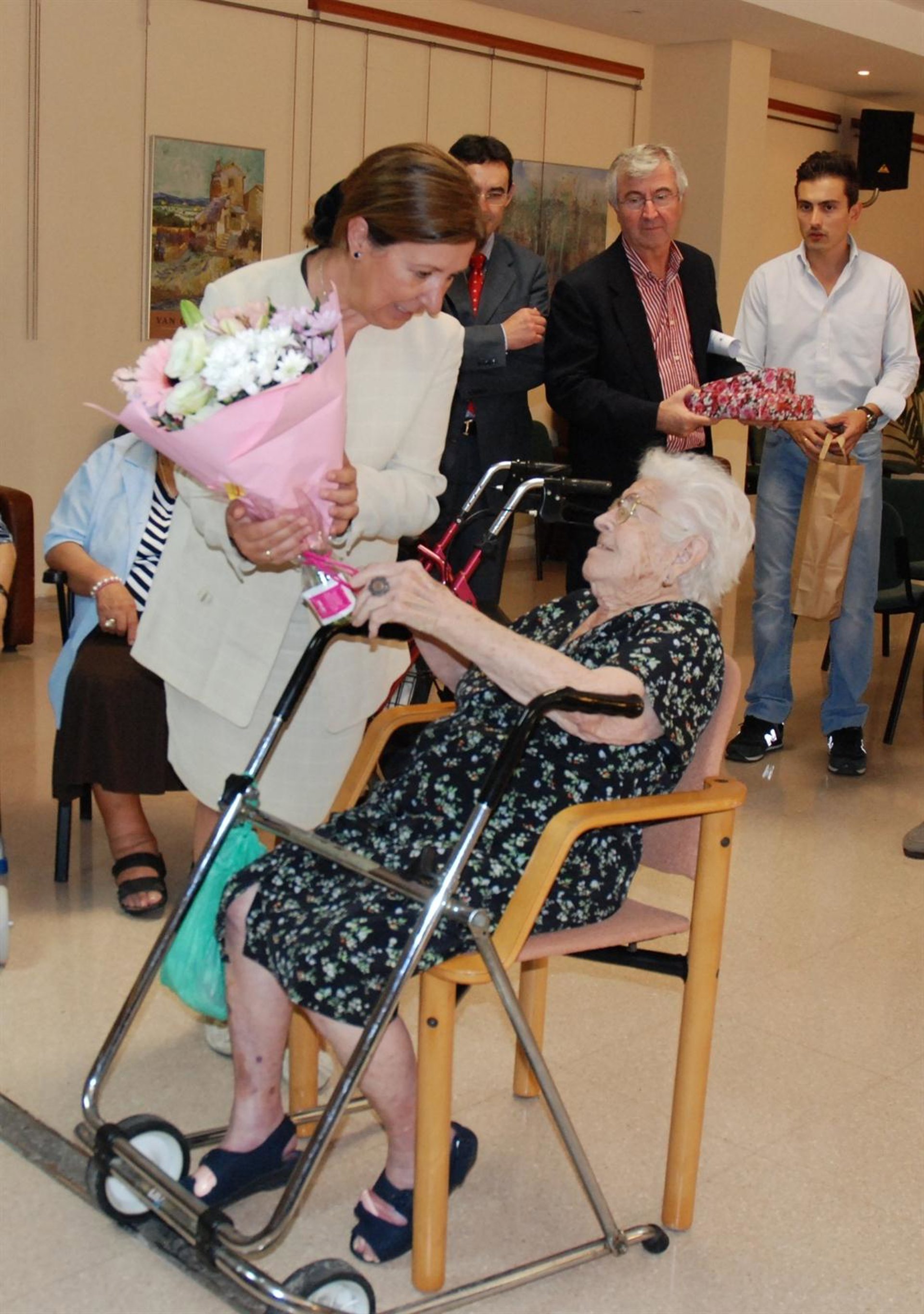 La consejera de Sanidad y Política Social celebró el Día del Mayor en la residencia San Basilio de Murcia, dependiente del IMAS, en la que se realizó un sencillo homenaje a Concepción Martínez, de 103 años, "como símbolo de los valores que representan nuestros mayores, como agentes activos de nuestra sociedad, por sus conocimientos y vivencias, que deben transmitir a las nuevas generaciones".