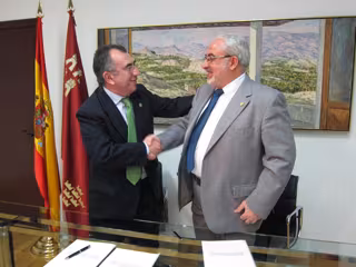 El consejero de Presidencia, Manuel Campos, ha firmado este jueves un convenio con el presidente de la Fundación Universitaria San Antonio y presidente de la UCAM, José Luis Mendoza, para que los 37 alumnos del 'Máster Universitario en Ciencias de la Seguridad y Criminología' tengan 150 horas prácticas.