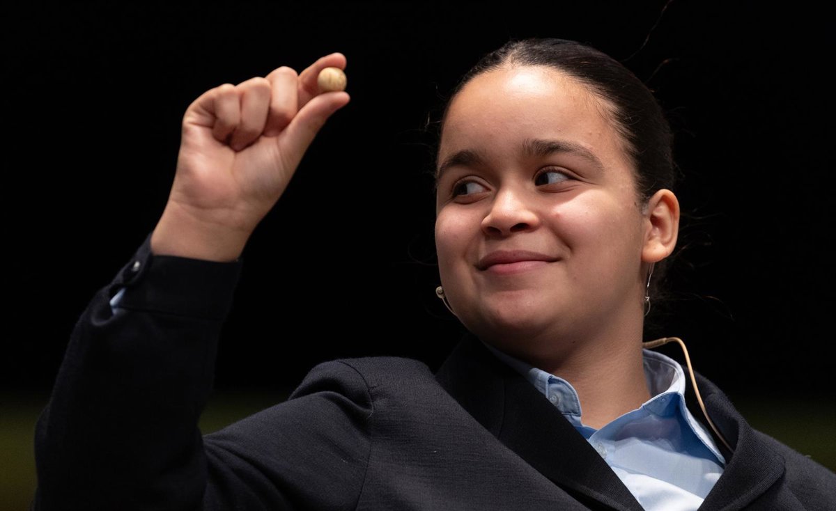 Paula Figuereo Figuereo canta un quinto premio, el número 01568, durante el Sorteo Extraordinario de la Lotería de Navidad 2023 en el Teatro Real de Madrid, a 22 de diciembre de 2023, en Madrid (España). El sorteo se celebra en esta ocasión con aforo co - Eduardo Parra - Europa Press
