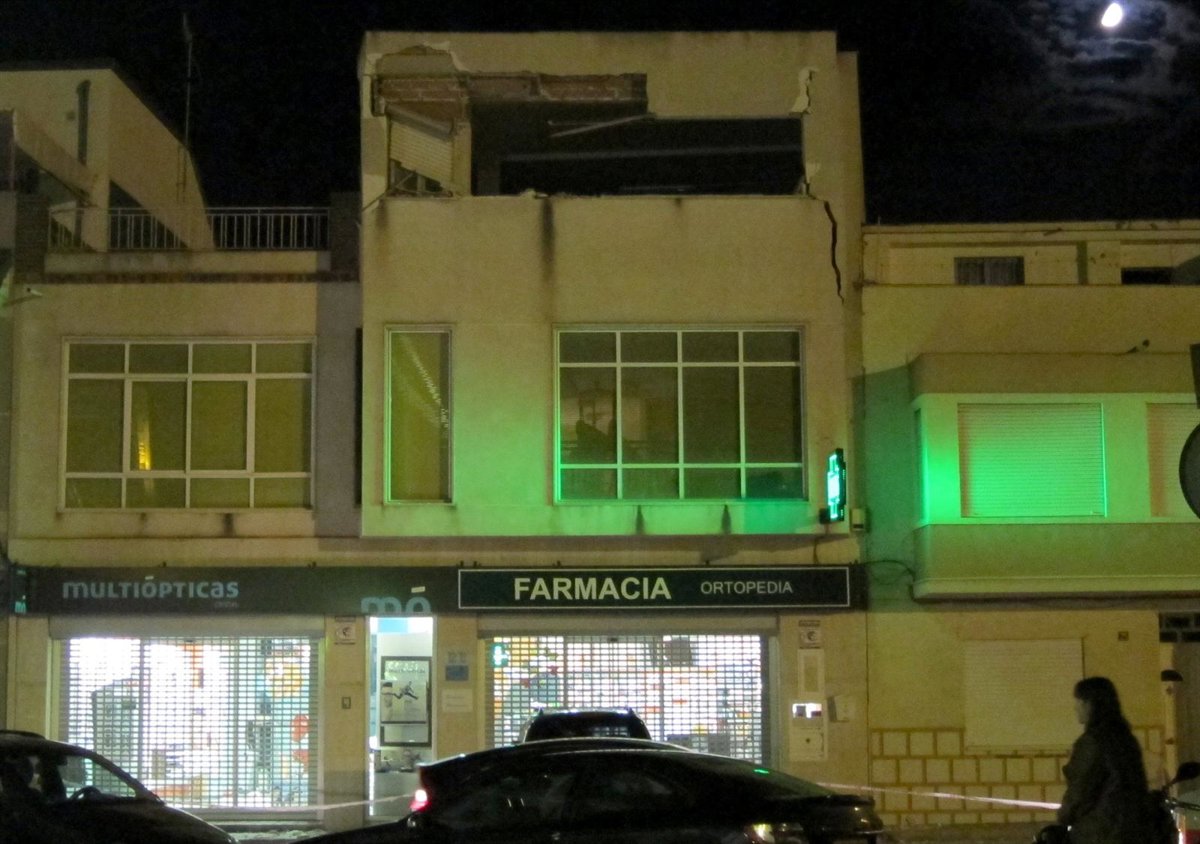 En cuanto a la Farmacia de Josefina y María Mazzuchelli Pérez, MU-381-F, Plza. del Trabajo, número 1, Urbanización La Viña, ha sido autorizada a abrir pero dicha apertura puede tener restricciones, ya que existe peligro de desprendimiento de voladizos y cornisas en el edificio colindante, por lo que es posible que los servicios técnicos que trabajen en la zona ordenen en algún momento el cierre de la farmacia.