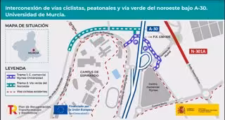 El objetivo de estas obras es mejorar la conectividad entre los actuales itinerarios ciclistas de las inmediaciones, las zonas residenciales adyacentes, la Universidad de Murcia y la vía Verde del Noroeste.