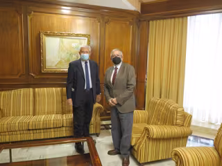 El presidente de la Asamblea Regional, Alberto Castillo, y el presidente de la Asociación Española contra el Cáncer, en la Región (AECC), Manuel Molina Boix - ASAMBLEA REGIONAL DE MURCIA