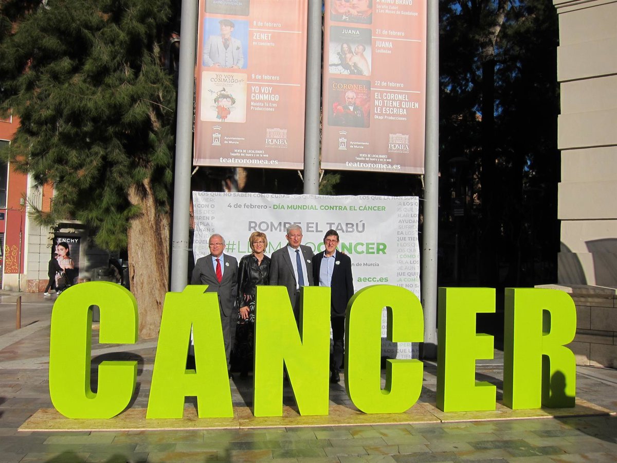La campaña ha sido presentada este martes, Día Mundial contra el Cáncer, en la Plaza Romea, por el director de la AECC en la Región de Murcia, Manuel Molina; el consejero de Salud, Manuel Villegas, y el concejal de Salud en el Ayuntamiento de Murcia, José Felipe Coello.