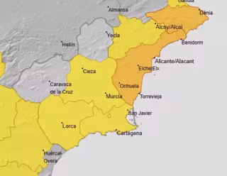 La Agencia Estatal de Meteorología (Aemet) ha ampliado hasta las 18.00 horas de este viernes su aviso amarillo por lluvias y tormentas en la Vega del Segura, el Guadalentín, Lorca y Águilas y el Campo de Cartagena y Mazarrón.
