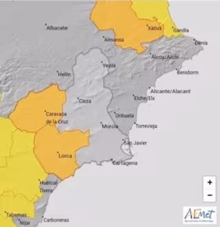 Por su parte, la Vega del Segura, Campo de Cartagena, Mazarrón y Altiplano no tienen avisos por lluvias decretados.