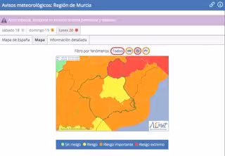 Mapa de alertas meteorológicas de la Aemet para la Región de Murcia - AEMET