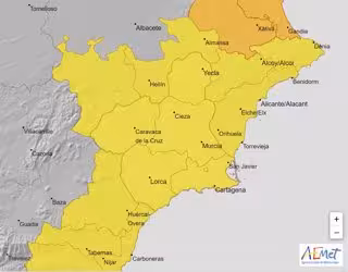 La Agencia Estatal de Meteorología (Aemet) ha ampliado a toda la Región de Murcia el aviso amarillo por riesgo de tormentas y precipitaciones de hasta 25 litros por metro cuadrado en una hora hasta las 18.00 horas de este viernes.
