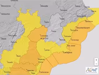 Finalmente, ha agregado otro aviso de nivel amarillo por vientos de hasta 70 kilómetros por hora en las comarcas del Valle Guadalentín, Lorca y Águilas, y de hasta 80 kilómetros por hora en Cartagena y Mazarrón. Ambos avisos estarán activos de las 9.00 a las 21.00 horas de lunes.