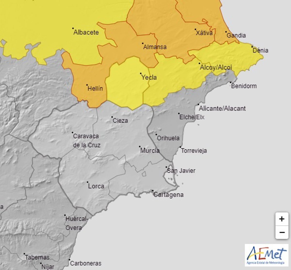 La Aemet emite un aviso amarillo por lluvias y tormentas para la tarde de este martes en el Altiplano - AEMET