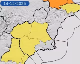 De este modo, Noroeste, Vega del Segura y Valle de Guadalentín, Lorca y Águilas tendrán aviso amarillo por lluvias durante toda la jornada.