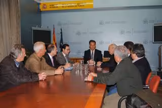 El delegado del Gobierno, Joaquín Bascuñana; el secretario de la Delegación de Gobierno, José Gabriel Ruiz; y el jefe de la Demarcación de Carreteras del Estado, Ángel García Garay, se han reunido este martes con los afectados por la expropiación de la autovía del Reguerón, a quienes se les ha comunicado que "antes de que finalice el mes de noviembre habrán cobrado cerca de 700.000 euros".