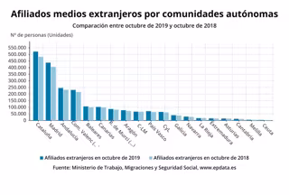 Afiliados medios extranjeros por comunidades autónomas - EUROPA PRESS