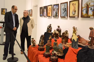 El concejal de Cultura y Patrimonio del Ayuntamiento de Águilas, Francisco Miguel Martínez, y el maestro mayor del Gremio Regional de Artesanías Varias, José María Gómez, acompañados de otras autoridades locales e invitados, inauguraron anoche la exposición artesana sobre la vida y obra del escultor Francisco Salzillo Alcaraz.