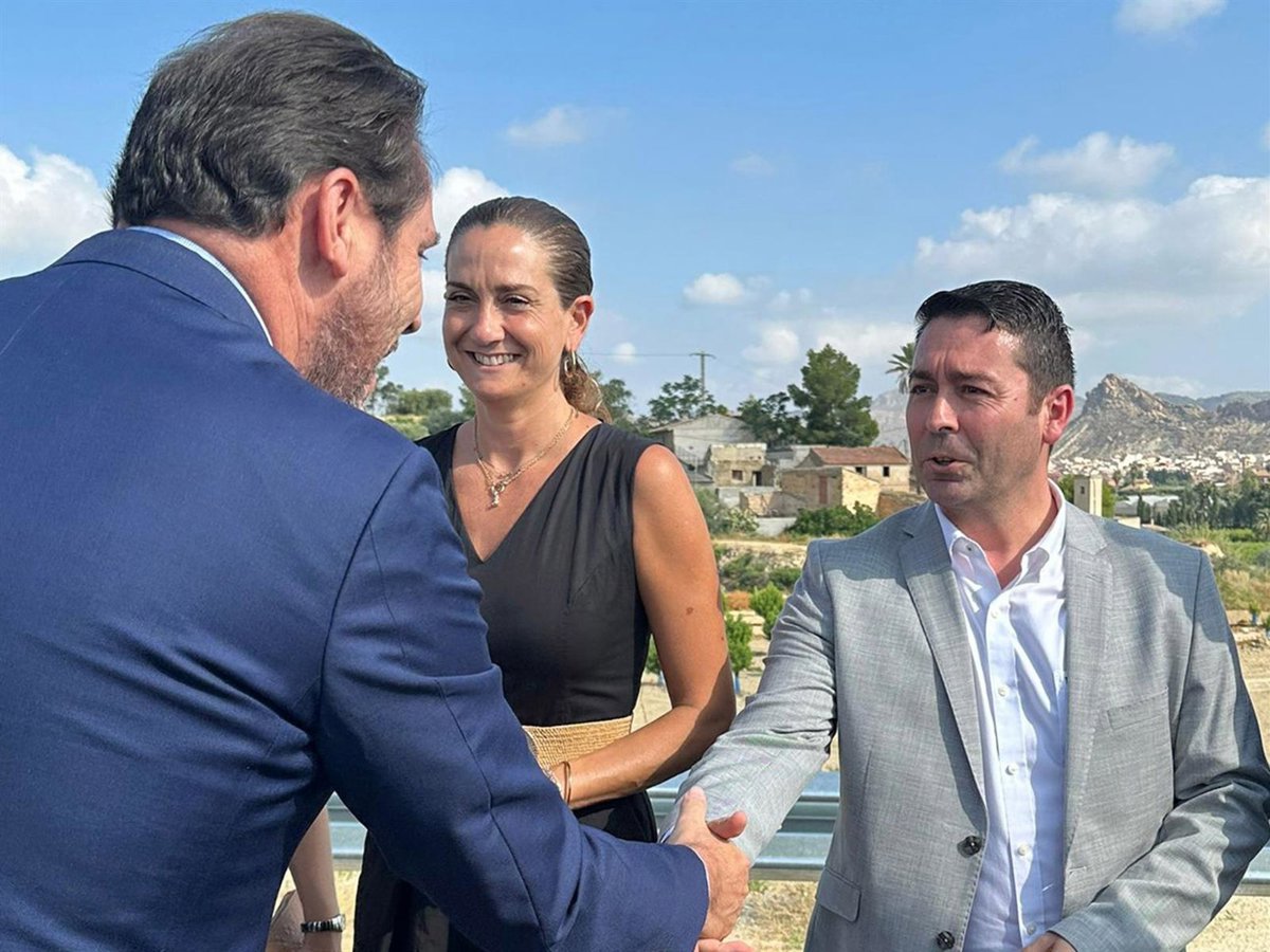 El alcalde de Las Torres de Cotillas, Pedro José Noguera, saluda al ministro de Transportes y Movilidad Sostenible, Oscar Puente, en la inuguración de los dos primeros tramos del Arco Noroeste de Murcia - AYUNTAMIENTO DE LAS TORRES DE COTILLAS