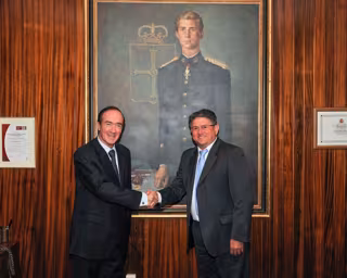 El alcalde de Los Alcázares, Anastasio Bastida; y el presidente-director general de la Fábrica Nacional de Moneda y Timbre-Real Casa de la Moneda, Jaime Sánchez Revenga, se han reunido este jueves en Madrid con motivo de la celebración del Centenario de la Hidroaviación Militar Española y del Aeródromo, que se celebra en el municipio en 2015.