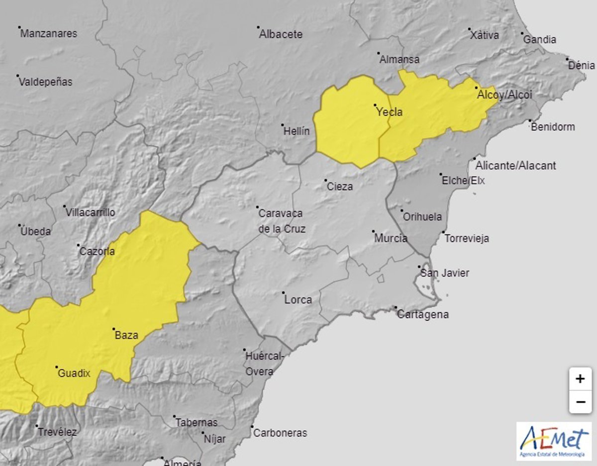 La Agencia Estatal de Meteorología (Aemet) ha emitido un aviso amarillo por temperaturas mínimas de hasta -5C en la comarca del Altiplano durante la próxima madrugada.