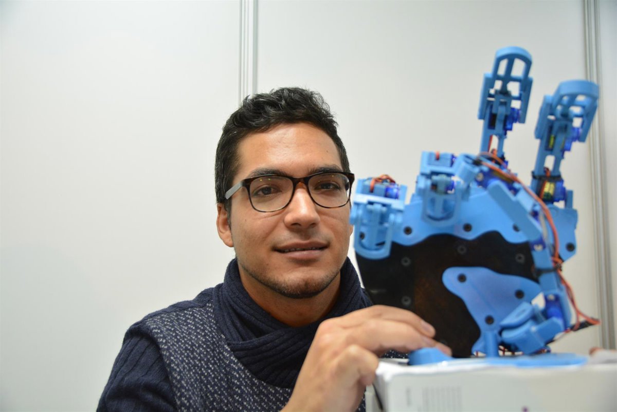 El estudiante de la Universidad Politécnica de Cartagena (UPCT) René Trolle ha diseñado, fabricado mediante impresión 3D y programado una mano robótica que juega aleatoriamente a piedra, papel y tijera y es capaz de deletrear el alfabeto de la lengua de signos.