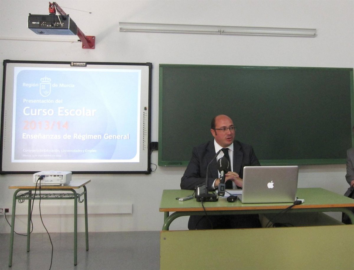 Datos que ha dado a conocer este jueves, en rueda de prensa, el consejero durante la presentación de los nuevos retos de la Comunidad en Infantil, Primaria y Secundaria para el curso 2013-2014, donde ha dejado claro el objetivo de que "para los próximos cinco años, la mayoría de los centros educativos de la Región sean bilingües", para lo que ha pedido la colaboración de todos, asegurando que pondrán los medios para ello.