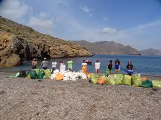 Los voluntarios de la Asociación Naturalistas del Sureste (ANSE) recogieron este sábado 45 sacos de basura de la playa de Cala Salitrona, situada en el entorno de La Muela-Cabo Tiñoso, en el término municipal de Cartagena, a pesar de que tan solo habían transcurrido tres meses desde la última limpieza realizada por ANSE en el mismo lugar.