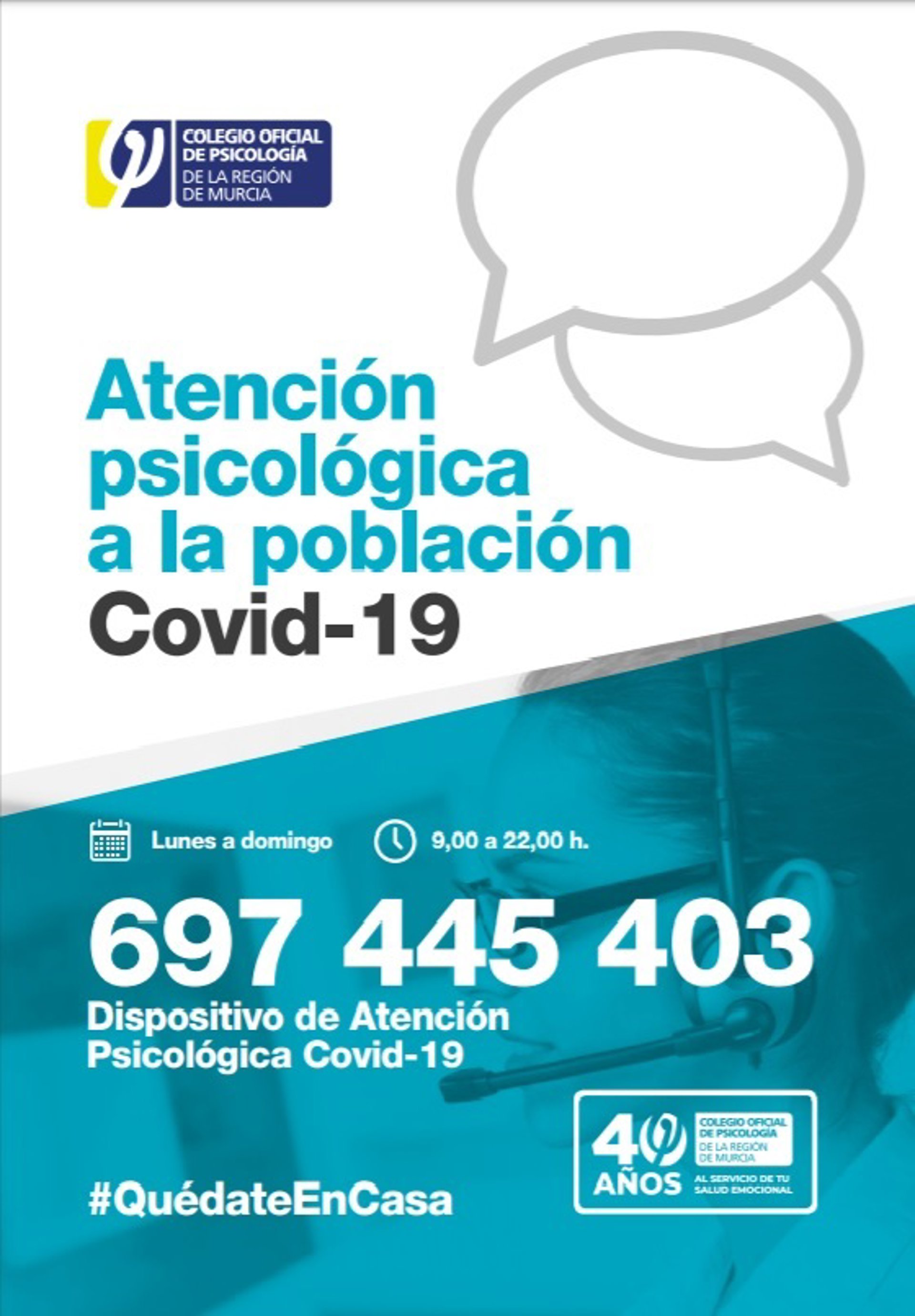 Cabe recordar que, desde que se declaró el estado de alarma el pasado 13 de marzo, la Junta de Gobierno del Colegio Oficial de Psicología de la Región de Murcia comenzó a diseñar un dispositivo de atención psicológica dirigida a atender las dificultades que a nivel emocional y psicológico pudieran tener diferentes sectores de la población.