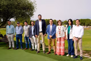 El presidente provincial de Vox en Murcia, José Ángel Antelo, junto a miembros de su partido en el campo de golf de Altorreal - VOX MURCIA
