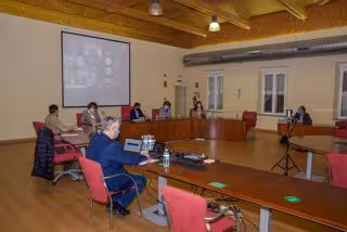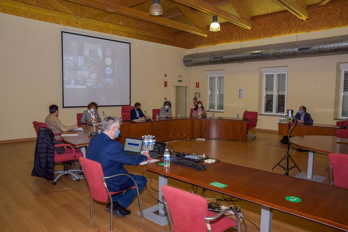 Asistentes presenciales y virtuales en el Consejo Social de ayer, con el vicerrector de Economía en primer término. - UPCT